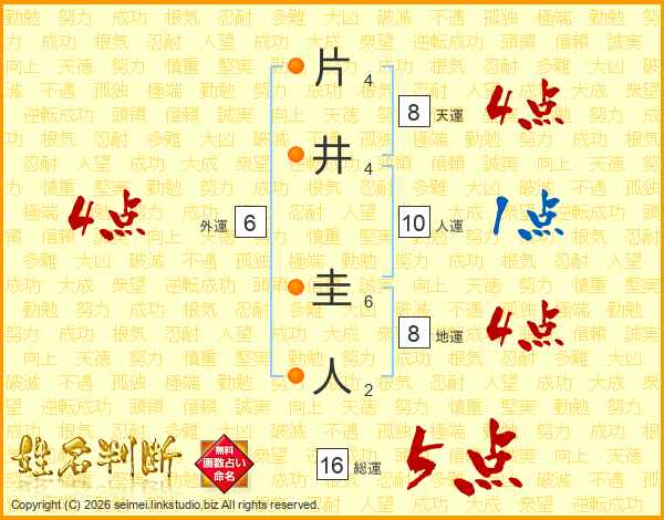 片井圭人さんの総運は16画の5点!