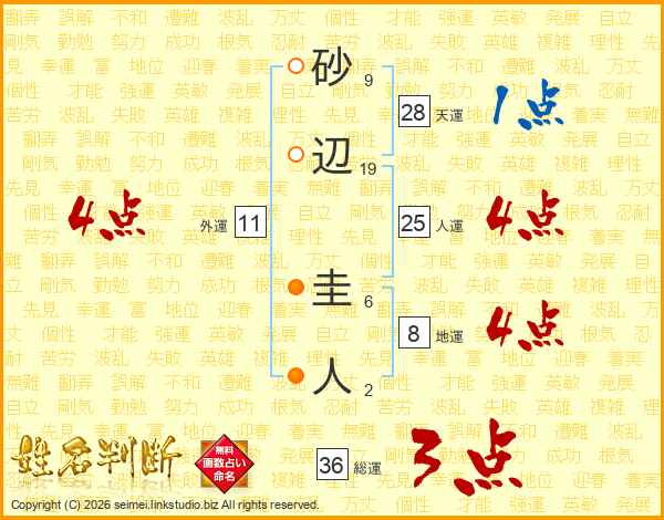 砂辺圭人さんの人運は25画の4点!