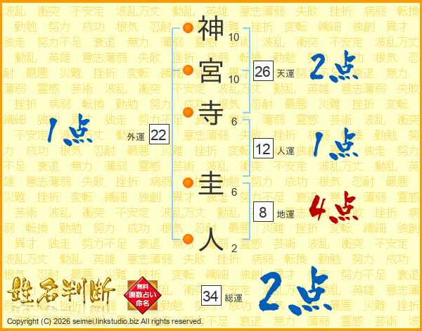神宮寺圭人さんの総運は34画の2点!