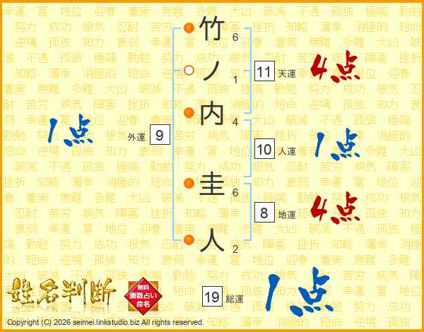 竹ノ内圭人さんの天運は11画の4点!