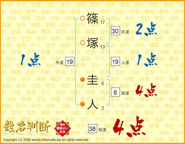 篠塚圭人さんの総運は38画の4点!