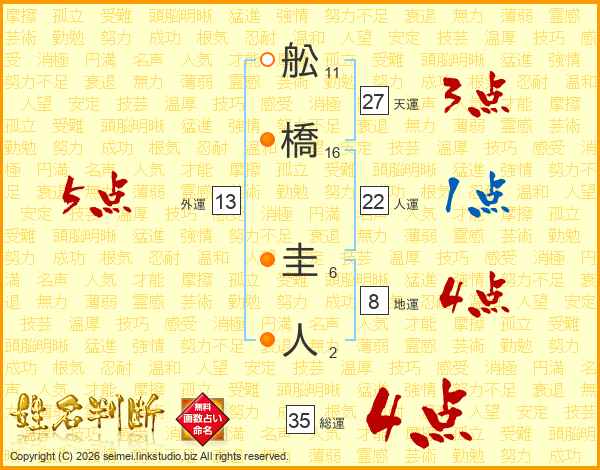 舩橋圭人さんの総運は35画の4点!