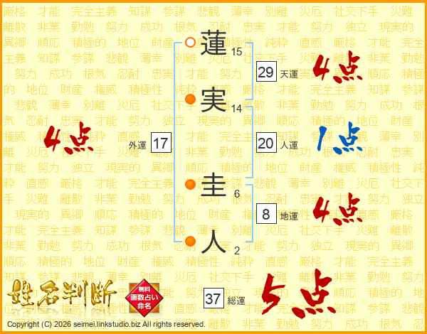 蓮実圭人さんの総運は37画の5点!