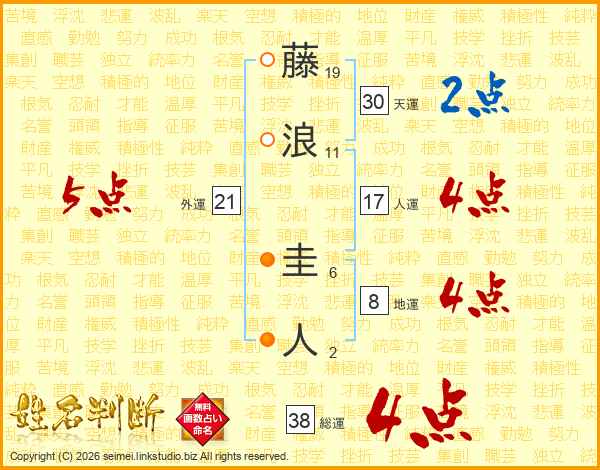 藤浪圭人さんの総運は38画の4点!