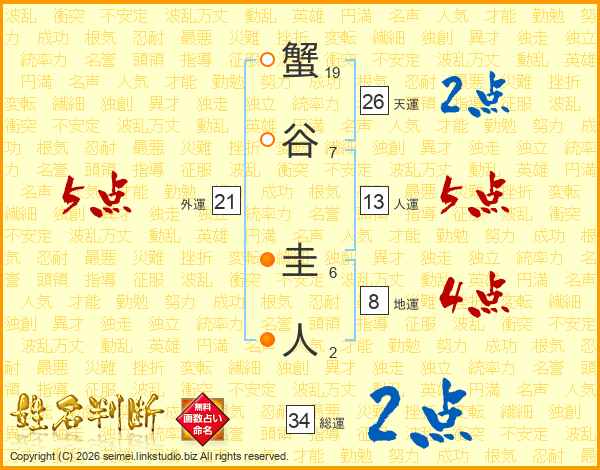 蟹谷圭人さんの外運は21画の5点!