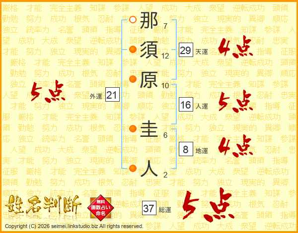 那須原圭人さんの総運は37画の5点!