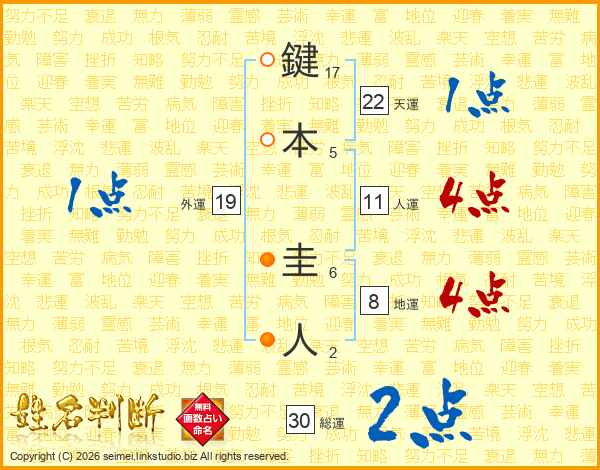 鍵本圭人さんの人運は11画の4点!