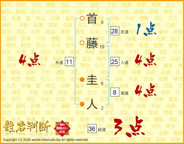 首(9画)藤(19画) 圭(6画)人(2画)