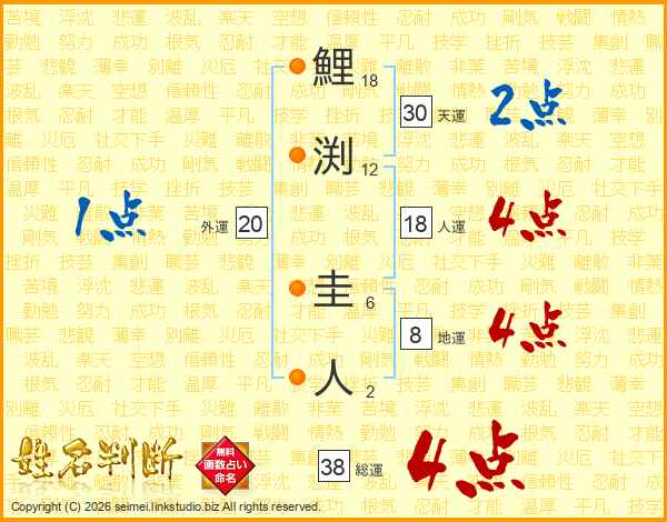 鯉(18画)渕(12画) 圭(6画)人(2画)