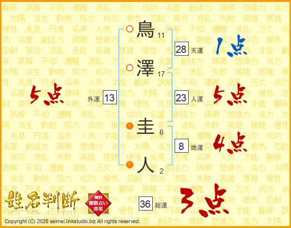 鳥澤圭人さんの総運は36画の3点!