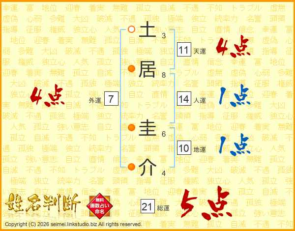 土居圭介さんの総運は21画の5点!