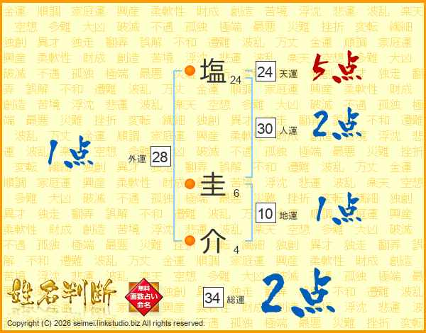 塩圭介さんの総運は34画の2点!