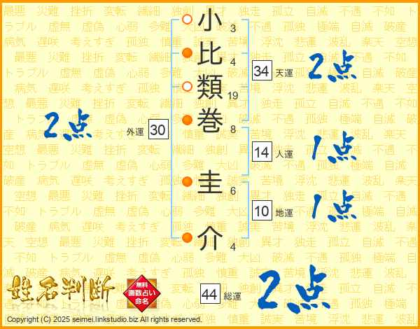 小比類巻圭介さんの総運は44画の2点!