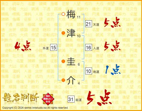梅津圭介さんの天運は21画の5点!