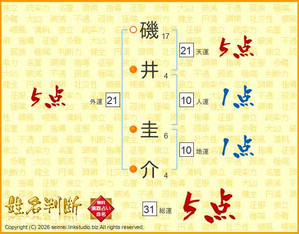 磯井圭介さんの総運は31画の5点!