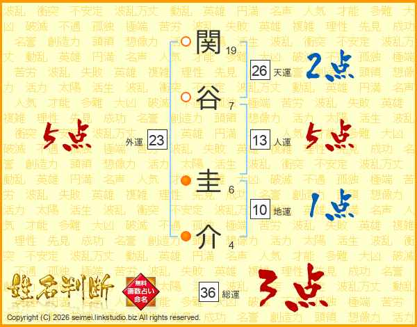 関谷圭介さんの外運は23画の5点!
