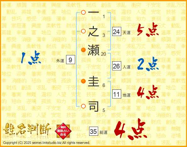 一之瀬圭司さんの総運は35画の4点!