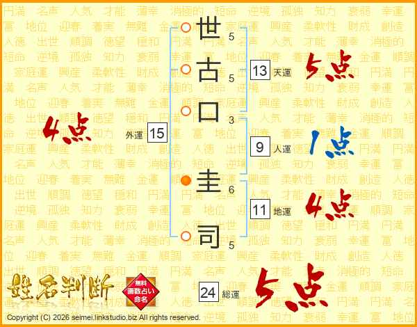 世(5画)古(5画)口(3画) 圭(6画)司(5画)