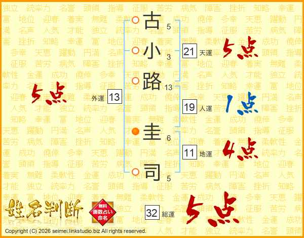 古小路圭司さんの天運は21画の5点!