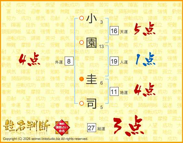 小(3画)園(13画) 圭(6画)司(5画)