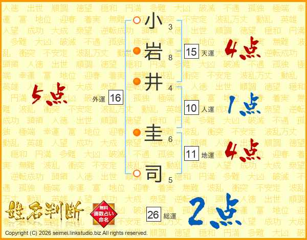 小岩井圭司さんの総運は26画の2点!