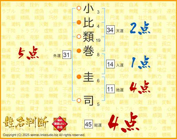 小(3画)比(4画)類(19画)巻(8画) 圭(6画)司(5画)