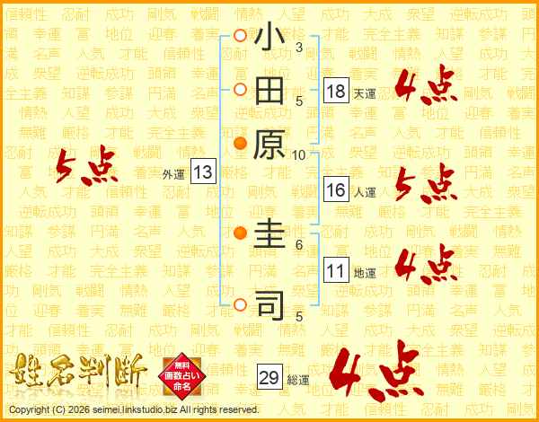 小(3画)田(5画)原(10画) 圭(6画)司(5画)