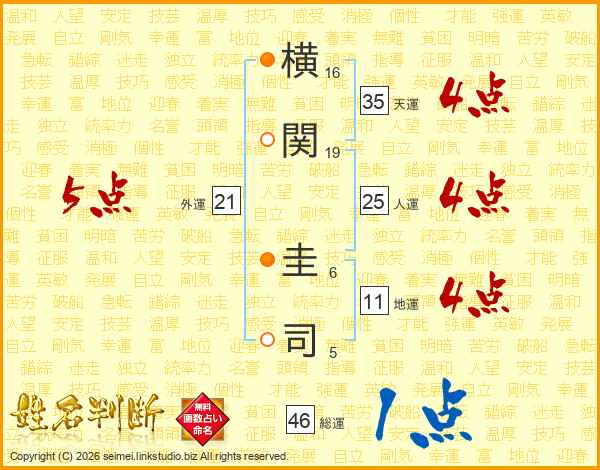 横関圭司さんの総運は46画の1点!