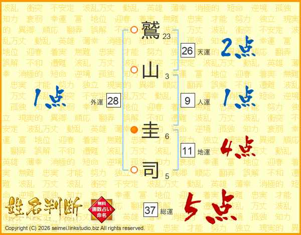 鷲山圭司さんの総運は37画の5点!