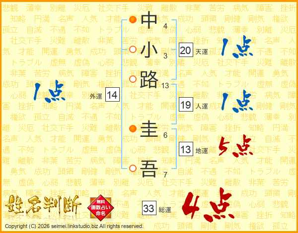 中小路圭吾さんの総運は33画の4点!
