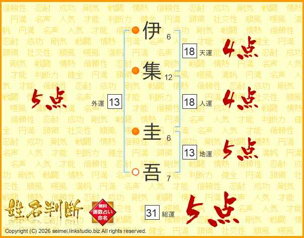 伊集圭吾さんの総運は31画の5点!