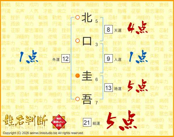 北口圭吾さんの総運は21画の5点!