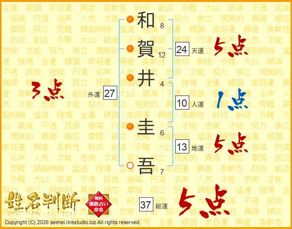和(8画)賀(12画)井(4画) 圭(6画)吾(7画)