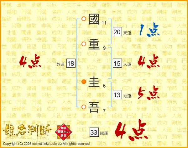 國重圭吾さんの総運は33画の4点!