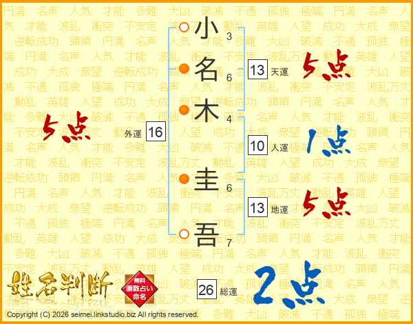 小名木圭吾さんの総運は26画の2点!