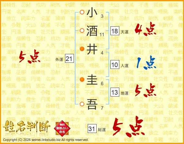 小酒井圭吾さんの総運は31画の5点!