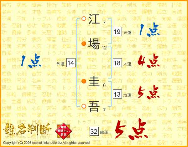 江場圭吾さんの総運は32画の5点!