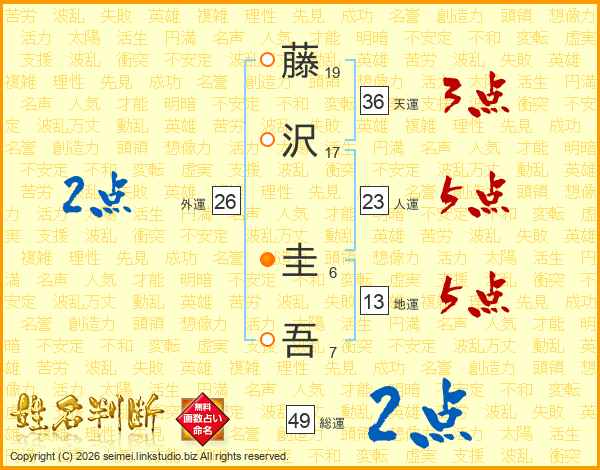 藤沢圭吾さんの人運は23画の5点!