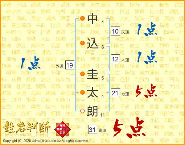 中込圭太朗さんの地運は21画の5点!