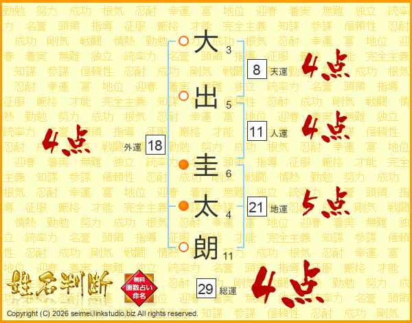 大出圭太朗さんの総運は29画の4点!