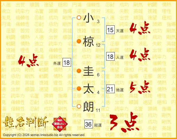 小椋圭太朗さんの外運は18画の4点!