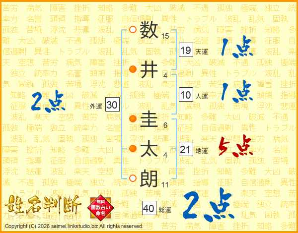 数井圭太朗さんの地運は21画の5点!