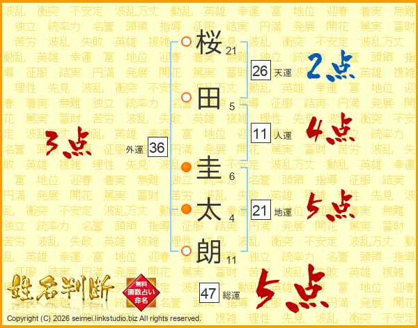 桜田圭太朗さんの総運は47画の5点!