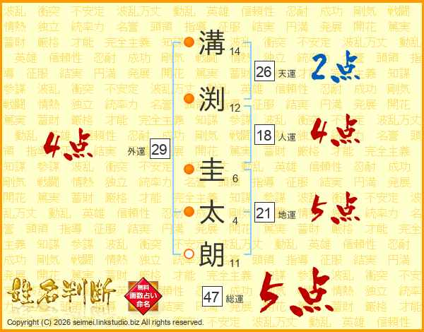 溝渕圭太朗さんの総運は47画の5点!