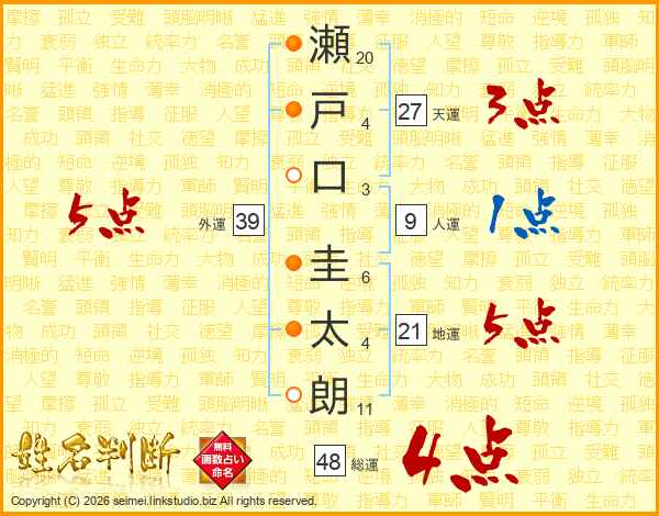 瀬戸口圭太朗さんの外運は39画の5点!