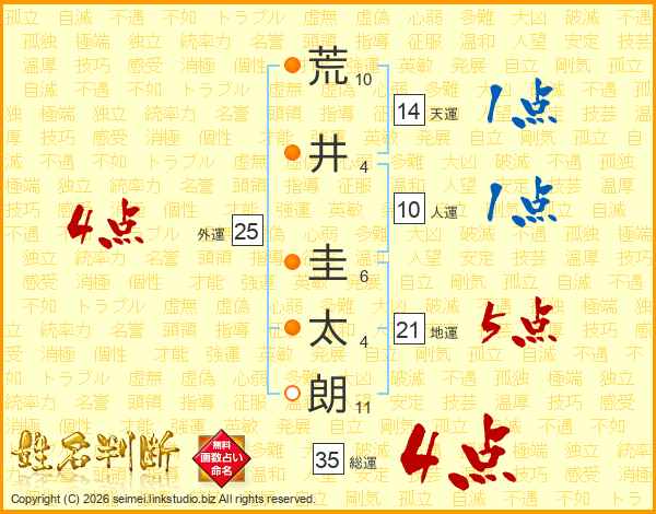 荒井圭太朗さんの総運は35画の4点!