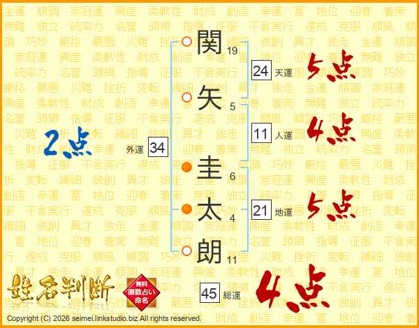 関矢圭太朗さんの総運は45画の4点!