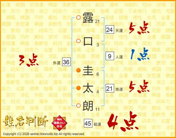 露口圭太朗さんの総運は45画の4点!