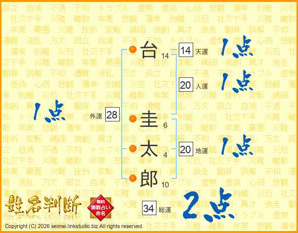 台圭太郎さんの天運は14画の1点!