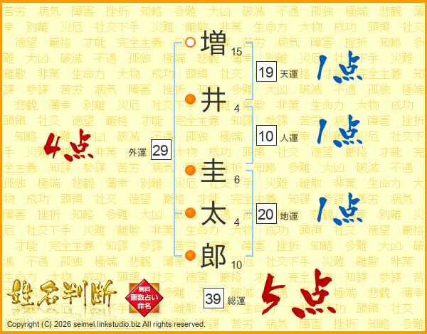 増(15画)井(4画) 圭(6画)太(4画)郎(10画)